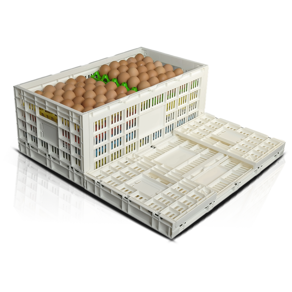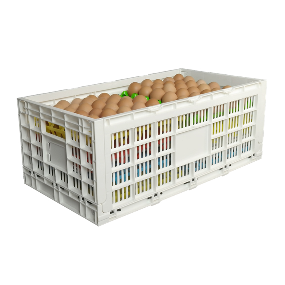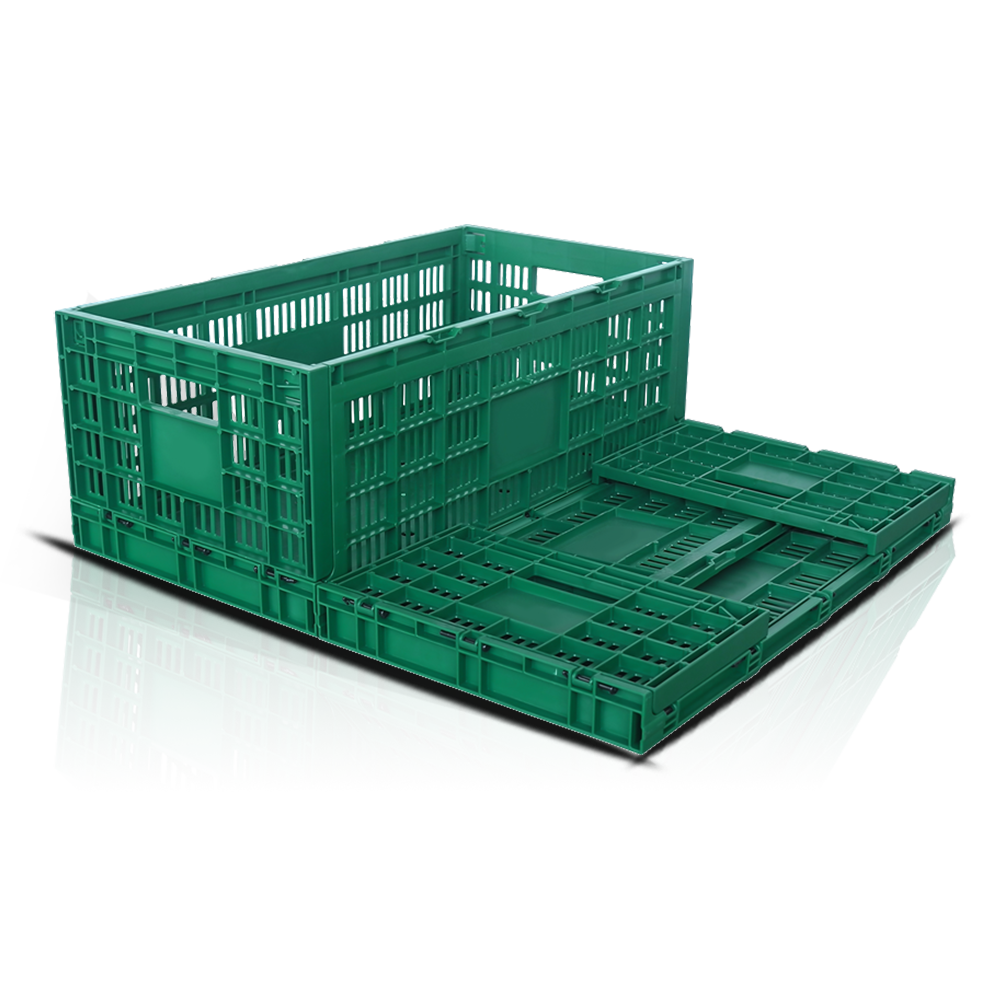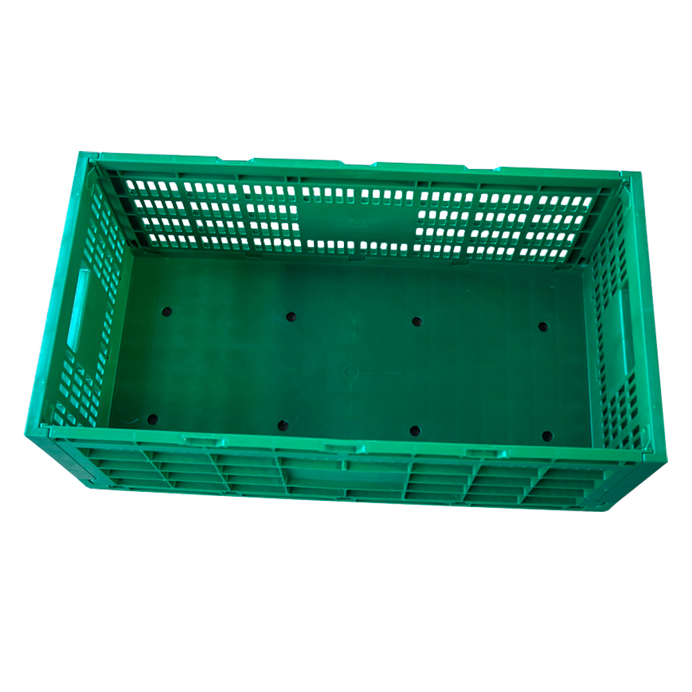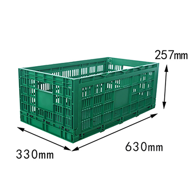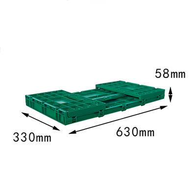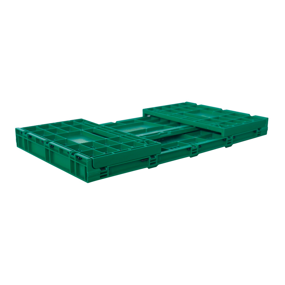 Hộp gấp nhựa áp dụng các tiêu chuẩn quốc tế và hợp tác với pallet tiêu chuẩn Nhật Bản loại 1210, loại 1208 hoặc loại T11, có thể thực hiện xử lý cơ giới hóa, nâng cao hiệu quả luân chuyển và kiểm soát tỷ lệ hư hỏng hàng hóa; nó cũng có thể được sử dụng với xe rùa để xếp chồng và di chuyển.